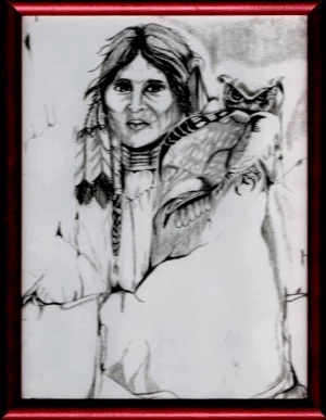 Reproduktion einer Bleistiftzeichnung von Daniel Maingas Gonzales, Yaqui-Nation, 1996