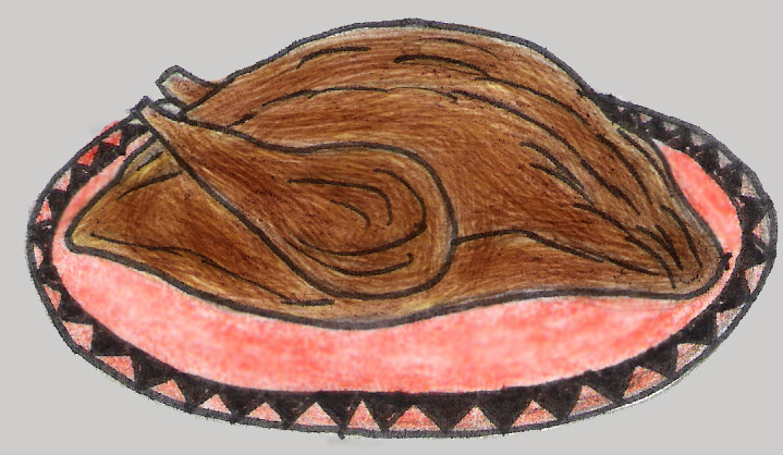 1 Hühnchen ausnehmen und waschen. Mit einem Papierküchentuch trockentupfen. Dann mit Salz und Pfeffer außen und innen einreiben. Die rohen Innereien, außer den Hals, zerhacken und mit 1 klein gehackten Apfel, 1 Ei, 1 Esslöffel getrocknetem Salbei sowie genügend Semmelbrösel vermengen, so dass ein fester Teig entsteht. Diesen Teig in das Hühnchen stopfen und das Hühnchen mit einem Zahnstocher verschließen. Lege das Hühnchen in eine mit Margarine ausgestrichene flache Backform mit dem Bauch nach unten und den restlichen Teig, der nicht ins Hühnchen passte, um das Hühnchen herum. Auch den Hals dazu tun. Im vorgeheizten Ofen etwa 30 min. bei mittlerer Hitze backen lassen. Nun Wasser, etwa 1 cm hoch, dazugeben und das Hühnchen wenden. Noch einmal 30 min. backen. Die Flüssigkeit mit etwas Maisstärke, die in kaltem Wasser angerührt wurde abbinden.